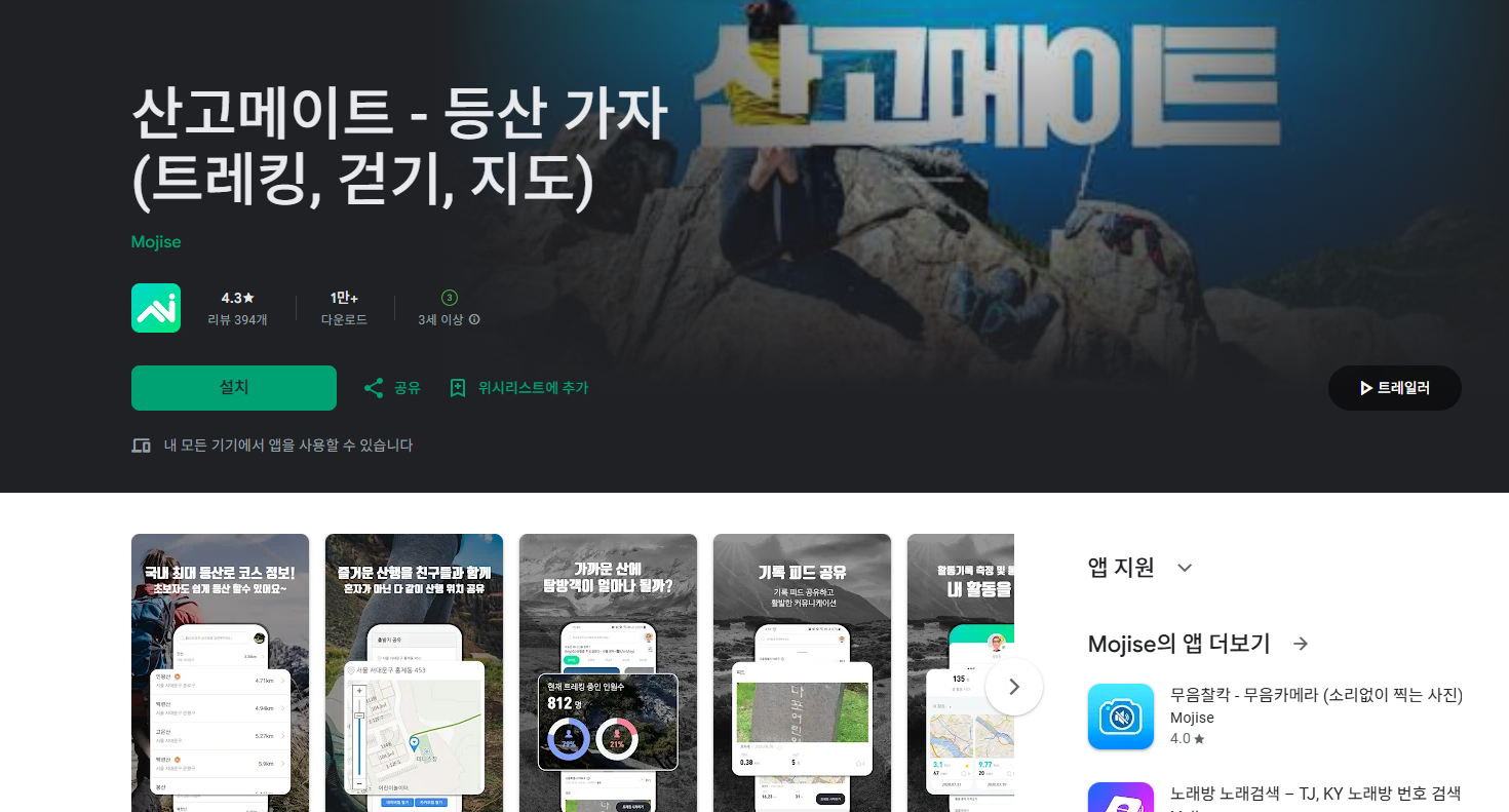 | 산고메이트 | 최대 등산로 정보, 인증샷 명소, 실시간 위치 공유 | 신규기능은 업데이트마다 변동 가능 |