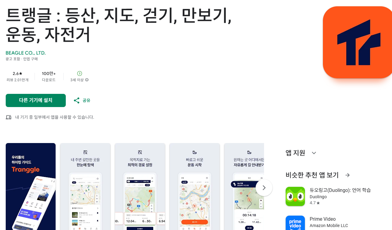 | 트랭글 | GPS 기록, 배지·커뮤니티, 오프라인 지도 | 초기설정 다소 복잡, 업데이트 후 일부 불편 의견 |