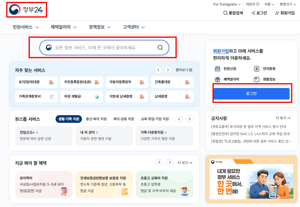 - 정부24 홈페이지 접속
